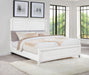 Refresh the look and feel of your bedroom with the inviting character of a modern upholstered bed. The bed features a wood frame in a distressed wh...