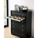 CHRISSY Chest, 34 1/4"L X 16 5/8"W X 51 3/8"H, 135.6lbs. Brighten your room with the sheen and shine that this chest delivers. The gleaming finish promotes a refreshing clean aesthetic with silver lines that glisten. Silver tone pulls detail the case goods brilliantly, offering an easy grasp to the one-of-a-kind jewelry drawers. Glimmering and glamorous, create the room you have always dreamed of.