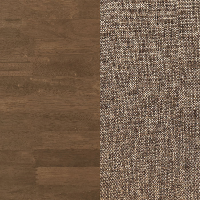 Indulge in a love of Euro-inspired fare that suits your discerning interior design requirements. This modern five-piece dining set is suited to both contemporary and transitional spaces, bridging motifs creating carefree aesthetics. Walnut finish rubberwood construction is sturdy without overly chunky, maintaining the clean lines you like to see. This set features a rectangular table with a straight edge top and rounded corners, as tapered legs are flush mounted as exterior side accents. Retro influence creates four chairs with curved backrests and nicely padded seat cushions upholstered with soft brown fabric. Key Features: • A clean, breezy aesthetic mimics iconic Euro-inspired style and a hint of mid-century modern flavor • Rubberwood construction with a warm walnut finish is versatile and inviting in your dining space • Rounded tabletop edges and a connected frame begin an efficient design with pleasing impact • Tasteful tabletop design drops into a base frame with legs visible from floor to top • Charming chairs feature high, curved backrests and nicely padded cushions with brown upholstery • Versatile finish and low-key design in this five-piece dining set add a perfect look for your casual kitchens and dining rooms