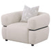 View full detailsSculptural in form yet grounded in comfort, this accent chair commands attention with its bold silhouette and plush detailing. Its wide, arched arm...